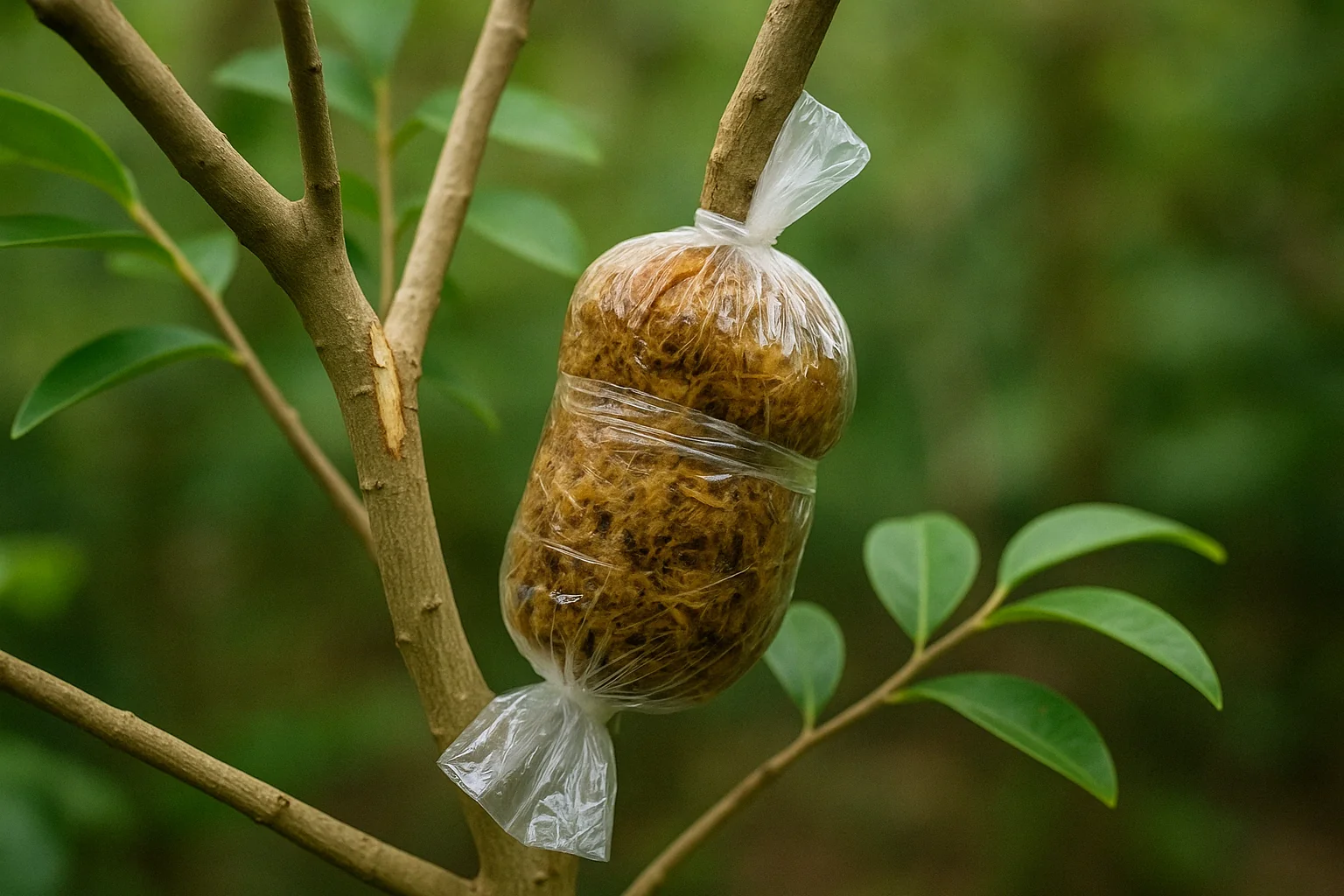 โข Choose a low-growing branch and gently wound the area where you want the roots to form.